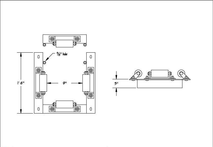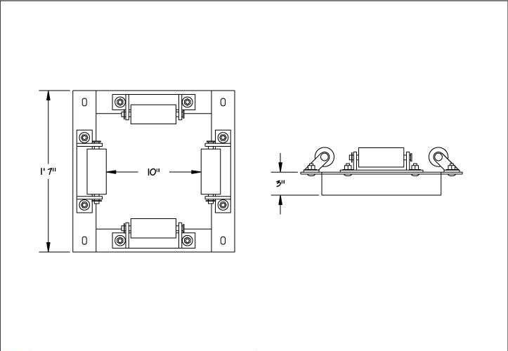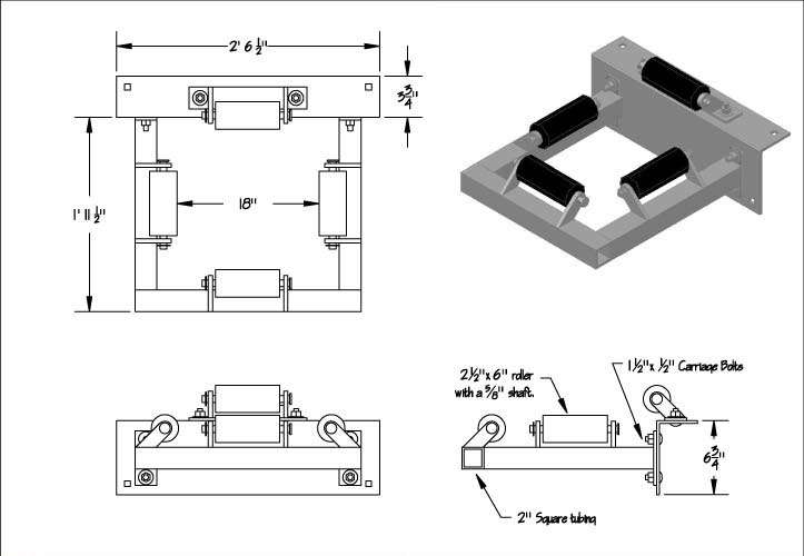 The internal square pile holders are made from 3″ x 3″ x 1/4″ angle and have four 6″ rollers included.