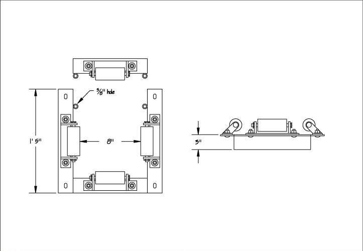 All hoops are 1½” schedule 40 pipe. The deck plates are 3 1/2″ x 6 1/2″ x 1/4″ angle. The roller assembly features a 6″ solid rubber roller and can be bolted to the deck plate or directly to the dock.